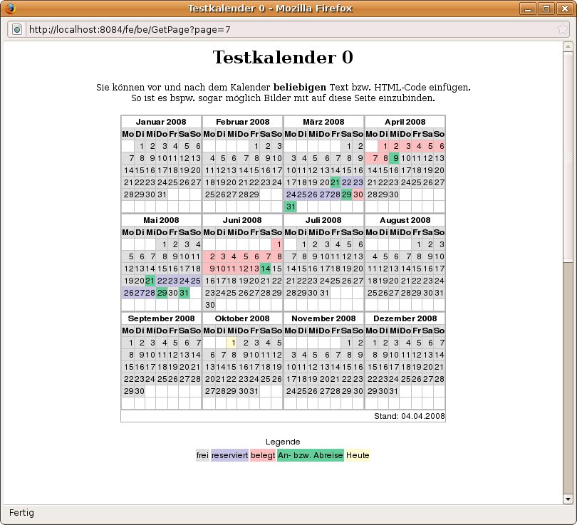 Ein Beispiel wie ein Belegungskalender aussehen könnte, sehen Sie hier. Weitere Kalender im Einsatz können Sie weiter unten finden.
